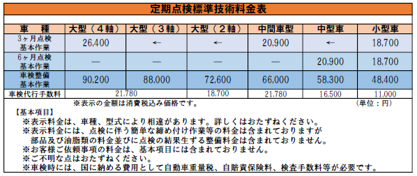 価格表に掲載のない作業につきましては、お気軽にお問い合わせください。